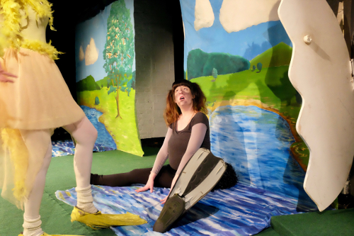 Wer denkt, man könne mit Kindern im Winter nur zu aufwendig inszenierten Musicals oder etwa Eisprinzessinnen-Shows gehen und deswegen erst gar nicht geht, liegt falsch und tut den Kindern damit unrecht. Das beweist das Stück „Das hässliche Entlein“ an diesem Mittwochvormittag im Kölner Horizont Theater. Gespannt und interessiert starren die Augen der Sprösslinge auf den Antihelden des heutigen Theaterstückes von Regisseur, Schauspieler und Autor Aydın Işık: Im Mittelpunkt des Geschehens steht hier keine makellose 0815-Beauty, sondern im Gegenteil ein verlorenes, gar hässliches, graues und dickes Entlein, das sogar von den doofen Wasserflöhen gehänselt wird. Antiheldenhaft und anti-darwinistisch ist schon das Ei des Nachzöglings vor dem Schlüpfen kleiner als das seiner Geschwister. Die massive Schale symbolisiert das versteinerte Kind zu Beginn des Lebens, das gar nicht aufbrechen will. Stattdessen ist es ein Spätzünder. Nachdem die schöne gelbe Schwester „Enteli“ (Signe Zurmühlen) zunächst verwundert ist, wie lange es dauert, bis ihr Schwesterchen geschlüpft ist, und wie diese aussieht, versucht sie fortan, der allem Anschein nach hässlichen „Grauline“ (Lisa Heck) Flöhe-Jagen beizubringen, Schwimmen, Fliegen und Paddeln. Doch vergeblich. Zu tollpatschig benimmt sich die naive, vermeintlich unschöne Nachzöglerin. Alsbald schlüpft die quietsche-gelbe Schwester in die Rolle einer meckernden Casting-Agentin: „Du fliegst nicht richtig! Du schwimmst ja ganz komisch! Wie siehst du überhaupt aus?“, sich dabei stets Unterstützung aus dem kindlichen Publikum holend, dieses quasi in den Mobbing-Prozess aktiv mit einbindend.