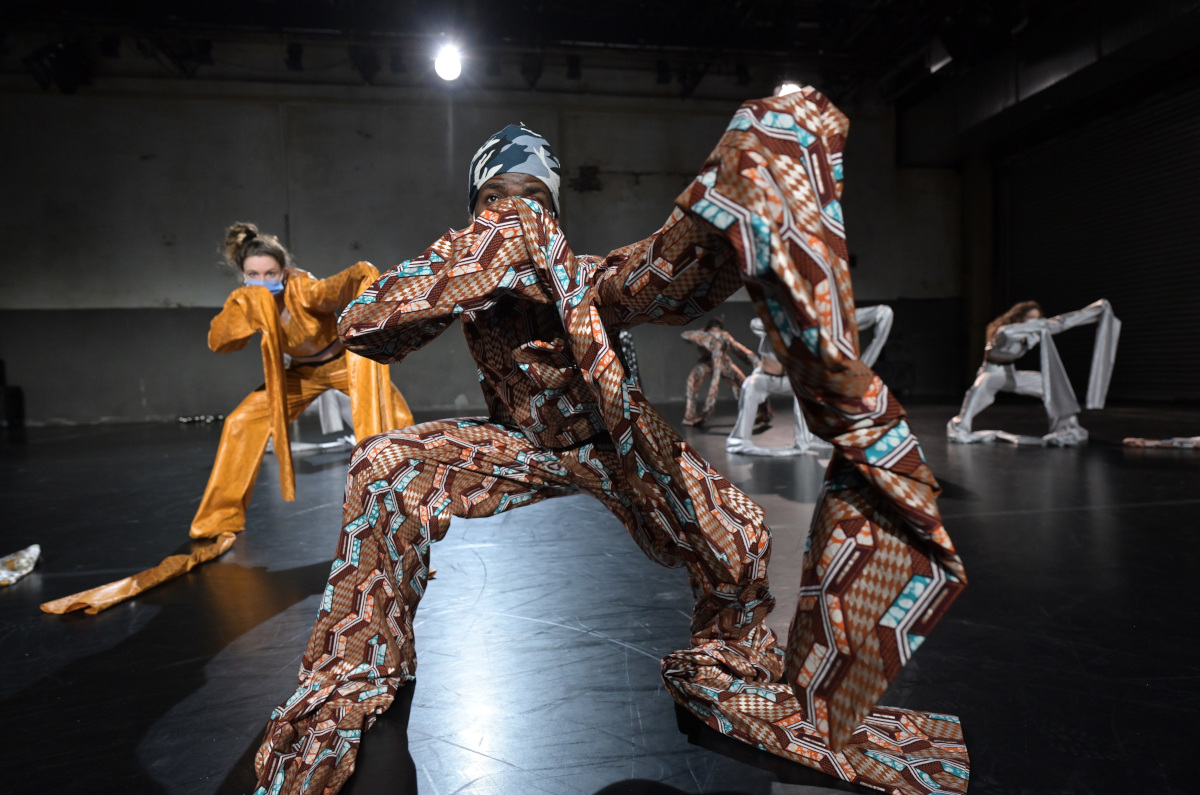 Eigene Interpretationen von Afro-Dance weisen Überschneidungen auf mit dem ruckartig gesprungenen Todestanz. Geschichtslektionen werden begleitet vom verspielten Tanz mit großen, bemalten Papierbögen. Zwischen Sprachengemisch und zu leisem Ton fällt es zunehmend schwer, den Vorträgen inhaltlich noch zu folgen, zumal Bild und Geräusche und Tanz natürlich auch ablenken. Aber vielleicht reicht es, die entscheidenden Sprachfetzen aufzunehmen.
