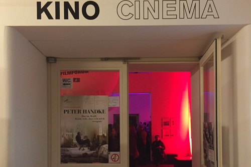 Mehrere hundert Menschen sind am Montagabend trotz Regen und sechs Grad Celsius ins Filmforum gekommen, um das neue Werk der Regisseurin und Drehbuchautorin zu sehen. Der Vorraum zum Kinosaal ist in roter Farbe beleuchtet, bereits einige Zeit vor Einlass tummelt sich ein Großteil dort. Tickets gab es für sieben Euro im freien Verkauf. Kühle Temperaturen kann die Zielgruppe ab 35 aufwärts allem Anschein nach besser vertragen, einige Jüngere finden ihren Weg ins Museum Ludwig aber auch. Zuschauer im schicken Anzug, in hipper Baskenmütze, in klassischer Levi’s-Jeans – Kultur kennt im Museum Ludwig keinen Dresscode. Als der Kinosaal geöffnet wird, bildet sich schnell eine Traube vor der schmalen Eingangstür. Innen empfängt Handke selbst – von einem Standbild auf der Leinwand. Er sitzt auf einem Holzstuhl mit gewebter Sitzfläche. Hinter dem vielleicht bedeutendsten zeitgenössischen Schriftsteller Österreichs steht ein gepolsterter Sessel, er ist umgeben von Dutzenden Büchern und einigen Gemälden.