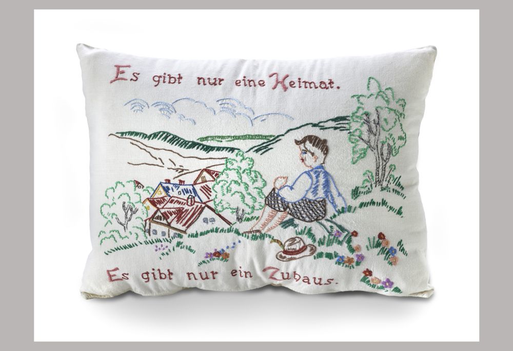 Es gibt nur eine Heimat, nur ein Zuhause. Drei bestickte Schmuckkissen aus den 1950er Jahren und eine grenzwertig farbige Kuckucksuhr von Stefan Strumbel markieren den Eingang in die „Suche“ nach der Heimat im Bonner Haus der Geschichte. Schon im Titel der Ausstellung zeigen sich die inhaltliche Diskrepanz der Wörter und die Widersprüche, die in deren Auslegung stecken. Die Zeit selbst scheint gegen eine allgemeingültige „Heimat“ zu arbeiten: Wechselnde Orte und wechselnde Gesellschaften machen die Verortung nicht leicht, die Psychologie dahinter nicht auffindbar und was das Allerschlimmste bleibt: Der Begriff „Heimat“ wird immer wieder missbraucht – selbst dann, wenn es ein Schlager zu sein scheint.