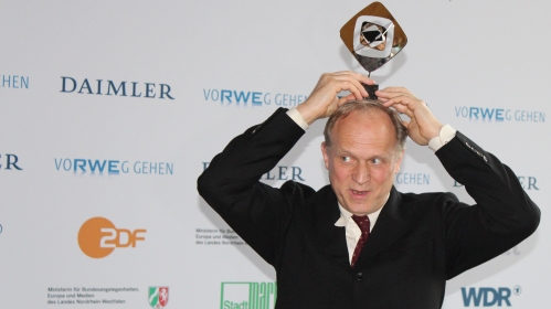 Wenige Stunden vor der feierlichen Zeremonie trafen sich etliche der Preisträger zum traditionellen Presseempfang im Grimme-Institut, wo sie sich mit den Auszeichnungen ablichten und von den Journalisten befragen ließen. Ulrich Tukur avancierte dabei wieder einmal zum Liebling der Massen, da er vor der Fotowand eine besonders spektakuläre Show ablieferte, sich den Preis auf den Kopf stellte oder durch die Luft wirbelte. Man konnte den Eindruck gewinnen, dass er den seriösen Preis gar nicht ernst nimmt. „Nein, ich nehme auch diesen Preis nicht so ganz ernst. Aber es ist natürlich ein seriöser Preis, und unter den Fernsehpreisen sicherlich einer der bedeutenden“, kommentierte Tukur anschließend seine Einlage. Als Wertschätzung der eigenen Arbeit freue er sich natürlich über jede Auszeichnung, die ihm zuteil werde, aber nach einer ganzen Reihe von Preisen in den zurückliegenden Jahren wäre er nun freilich „nicht mehr so aus dem Häuschen wie beim ersten Mal“. Tukur wurde zusammen mit seinem Schauspielkollegen Ulrich Matthes, dem Drehbuchautoren Michael Proehl, dem Regisseur Florian Schwarz und der Redakteurin Liane Jessen für seine herausragende Leistung im HR-Tatort „Im Schmerz geboren“ ausgezeichnet, nach der Prämierung im Jahr 2000 für den ZDF-Film „Warten ist der Tod“ nun der zweite Adolf-Grimme-Preis des Schauspielers.
