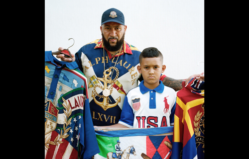 Das vollzieht sich in unterschiedlichster Weise: Die New Yorker Lo-Life Crew nahm das Erobern wörtlich und raubte in den 80er Jahren systematisch Ralph-Lauren-Shops aus, um sich mit dieser, der weißen Mittel- und Oberschicht vorbehaltenen Marke, einzukleiden. Ausgestellt wird neben Archivaufnahmen eine ausdrucksstarke Fotografie von Tom Gould, einem jungen neuseeländischen Fotografen, der Gangmitbegründer Thirstin Howl the 3rd und dessen Sohn für sein 2016 erschienenes Buch „Bury Me With The Lo On“ portraitiert hat. Mittlerweile rauben sie nicht mehr Fashionstores aus, sondern vertreiben ihre eigene Marke „Lo Life“ und gelten als wichtiger Einfluss für die Verbindung von Hip-Hop und High Fashion.