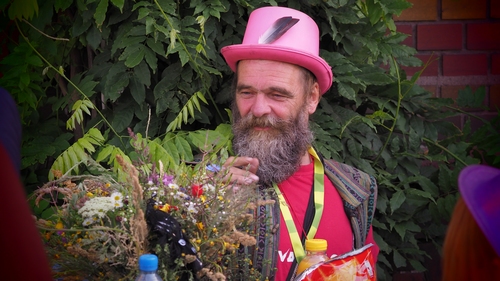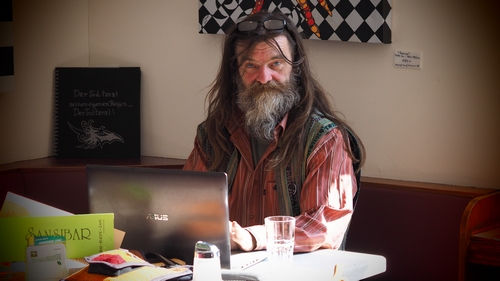 Ich bin im Prinzip ein freischaffender, selbständiger Lebenskünstler nach Schaustellerart. Im Gefolge von Joseph Beuys mit seiner sozialen Plastik, mit dieser Kunstform fühle ich mich absolut d’accord. Ich begreife das ganze Leben als eine soziale Pastik, und der ausübende Ort ist immer da, wo ich gerade bin, mit meinen selbstgeschaffenen Architekturen. Ich bin, glaube ich, einer der ganz wenigen, die in dieser Stringenz hier in Deutschland seit 35 Jahren seine eigene Architektur schaffen, die im Prinzip immer mobil ist und die sich immer wieder anpasst an die Gegebenheiten, also die eigenen Bedürfnisse, aber auch an die Landschaft und den Sozialraum. Mein Thema ist diese Welt.