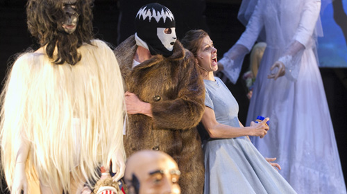 Das Bühnengeschehen selbst ist also nur ein Teil des ganzen Medien-Stücks. Das ist insofern schlau, als Richter möglichst viele Menschen für das Thema mediale Massenüberwachung sensibilisieren will. „Wir machen Konterpropaganda für den Mainstream“, twitterte die Regisseurin. Im Fokus des Stücks stehen die Whistleblower: Chelsea, ehemals Bradley Manning, die amerikanische Kriegsverbrechen im Irak über WikiLeaks enthüllte, Daniel Ellsberg, Edward Snowden und Julian Assange. Abwechselnd tretendie Darsteller aus einer Masse von Schaufensterpuppen und Politiker-Pappfiguren in Comiclook hervor. Mal sprechen sie abgeklärt ins Publikum, mal flüstern sie zurückgezogen in ein Mikrophon, mal wippen sie manisch auf einem riesigen Schaukelpferd. Nikolaus Benda, Yuri Englert, Judith Rosmair, Malte Sundermann und Birgit Walter schaffen einen erstaunlichen Spagat zwischen einer natürlichen Haltung, einer Entpsychologisierung der Figuren und der Abstraktion des Themas. Zappelnd, tanzend oder kauernd wirken sie wie tickende Bomben mit gekappter Zündschnur.