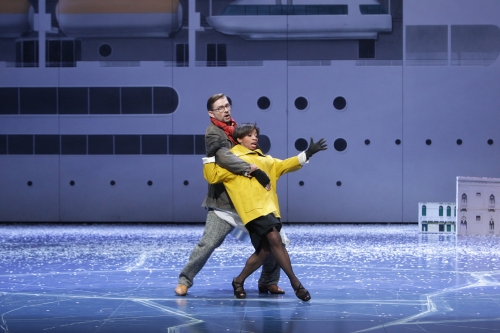 So gerät die Inszenierung ab dem zweiten Akt dann auch recht konventionell mit schöner, wirkungsvoller Ausstattung (Bühne: Jens Kilian, Kostüme: Tanja Liebermann) und auf einem durchweg erfreulichen musikalischen Niveau. Johannes Witt, der zweite Kapellmeister, dirigiert die Essener Philharmoniker mit Leichtigkeit und Schwung. Dimitry Ivanchey gibt als Herzog einen etwas schmierigen Protz-Promi, der bei den Frauen nichtsdestoweniger gut ankommt. Gemeinsam mit Elbenita Kajtazi als Annina und Christina Clark als Ciboletta gelingen ihm schöne Terzette. Albrecht Kludszuweit ist als Barbier Caramello einer der Antihelden – mit wichtigen, exponierten Arien, für die es verdienten Szenenapplaus gibt. Liliana de Sousa schließlich singt die Barbara, jene Frau, die Karel Ludvik als Senator so verzweifelt sucht, mit viel mehr stimmlicher Tragkraft, gerade in den tiefen Registern, als ihre Sprechstimme vermuten lässt.