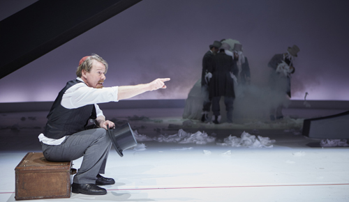Das siebenköpfige Männerensemble spielt in wechselnden Rollen, berichtet in erzählerischen Passagen, schlüpfen – Bart ab, Bart dran! – in verschiedene Rollen, kommentiert sich selbst oder duelliert sich in schmissigen Dialogen. Die karge aber voller Symbolik steckende Bühne (Olaf Altmann) bietet einen schier unendlichen Raum und wird dominiert von einer gigantischen Mechanik: Die „Spieluhr des Lebens“ beginnt sich bei ihrer leitmotivischen Nennung zu drehen. Zur epischen Größe des Abends – eine Koproduktion von Dresdener Staatsschauspiel und Kölner Bühnen – trägt auch die hollywoodartige Musik (Sven Kaiser) bei. Ein langer, dennoch kurzweiliger Abend, der mit Humor, ein bisschen Sitzfleisch und Konzentration zum Hochgenuss wird.