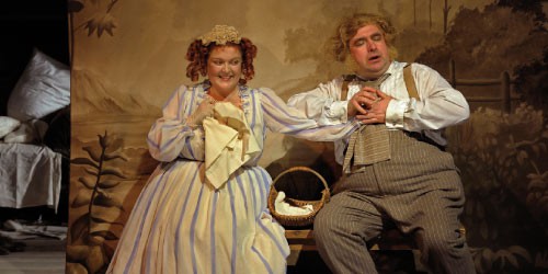 Die Romanvorlage von Iwan Alexandrowitsch Gontscharow aus dem Jahr 1859 setzt Hermanis in ein fast schon filmisch wirkendes Ausstattungstheater um. Kristine Jurjane hat mit naturalistischer Liebe zum Detail eine Guckkastenbühne gebaut, in der die Schäbigkeit der Wohnung Oblomows bis hinein in die Wasserflecken an der Wand ausgemalt ist. Dessen Diener Sachar (Albert Kitzl als treuer Seelenverwandter seines Herrn) schläft neben dem Ofen, ein großes Fenster lässt Morgenlicht auf den Bretterboden und zwischen die Flügeltür fallen. Stimmungsvoll ist das alles und nur unwesentlich gebrochen durch die grotesken Fettbäuche, mit denen alle Figuren ausstaffiert worden sind. Um Ironie scheint es nicht zu gehen, dazu ist der Tonfall zu beiläufig. Handlungen hingegen sind symbolisch aufgeladen.