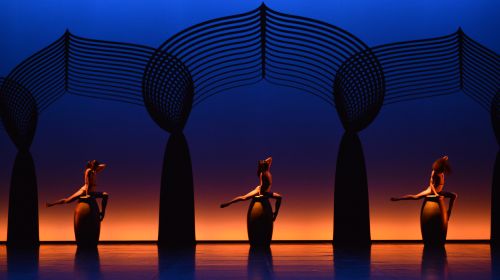 Aber der Wechsel aus orientalisch konnotierten Szenen und den wie Pausenfüller wirkenden Ensembleszenen zieht sich durch den ganzen Abend. Das Abstraktionsvermögen der Zuschauer wird arg herausgefordert, um in diesen flippigen Auftritten den Bezug zum Thema zu erkennen. Als sich dann noch die Tänzerinnen ähnlich den Girls von „Moulin Rouge“ in einer Reihe formieren und zum Klassiker „It’s a Man’s Man’s Man’s World“ (hier gesungen von Natacha Atlas) im dramatischen Oberlicht posieren, ist klar, dass Preljocaj wohl noch eine tausendundzweite Geschichte erzählen will: die der lüsternen Männer, deren Gesten hier regelmäßig im Schritt der Frau enden. Musikalisch wird das oft unterlegt von der Kanun, der orientalischen Kastenzither, um der Szenerie das entsprechende Orient-Kolorit zu geben. Von einer gesunden spannungsreichen Polarität der Geschlechter kann da nicht mehr die Rede sein. Später wird „a Man’s World“ gar noch ein zweites Mal eingespielt, denn jetzt müssen auch die Tänzer mit ihren Sixpacks in Kopulationsbewegungen posieren. Da passt es durchaus, drei Tänzerinnen im Spagat auf drei riesigen Amphoren herumturnen zu lassen. Die Frau als Gefäß männlicher Sexual-Fantasien, reduziert auf ihren Reproduktionspart. War man während des ganzen Tanzstückes immer wieder geneigt, das Ganze als Ironie zu verstehen, lässt spätestens jetzt die Inszenierung dazu keinen Raum. Was bleibt, ist eine tänzerische Show mit reichlich allegorischem Firlefanz, bunt, laut, knallig und sicher gut fürs Casino de Paris (wie ein Zuschauer beim Hinausgehen kommentierte). Wie enden doch die Erzählungen in „Tausendundeine Nacht“: „Und Scheherazade schwieg.“