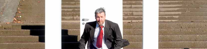 Der Probenraum der Blackbox-Company ist nur schwer zu finden. In den Kellerfluchten der Universität reiht sich Tür an Tür. Brandschutzgrau, ununterscheidbar. Soll man das schon als Omen begreifen? Nach ihrem so absurden wie komischen Stück „phase I“ über vier Männer auf einem Floß probt die Truppe jetzt „phase II“. Thema: zwei Männer und eine Tür. Der Probenraum entpuppt sich als kleiner quadratischer Raum mit weißen Paneelwänden. In der Mitte die ominöse Tür und zwei Kinderstühle. Von der alten „phase I“-Crew stehen diesmal die Schauspieler Hans Kieseier und Waldemar Hoge auf der Bühne. Massimo Tuveri ist für die Produktionsleitung und Ozan Akhan aus „hochzeitstechnischen“ Gründen diesmal ‚nur’ für Musik und Sounds zuständig. Obwohl gerade einmal drei Wochen bis zur Premiere bleiben, ist die Atmosphäre locker. Regisseur Hans Holzbecher hat einen provisorischen Szenenablauf erstellt, den er mit den Darstellern kurz durchspricht; dann geht es in den Durchlauf. Hans Kieseier und Waldemar Hoge rudern zwar kräftig im Text, doch die Grundsituation steht. Es sind vor allem das Tempo und die emotionale Dichte der Situation, an denen Hans Holzbecher akribisch feilt.