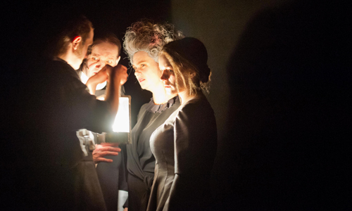 Luise Voigt wagt mit ihrer Inszenierung in der Werkstatt am Theater Bonn etwas Verblüffendes. Sie überbietet Goethes ästhetisierenden Ansatz mit einer höchst durchstilisierten Interpretation. Die Stimmen der fünf Schauspieler sind durchweg verzerrt, ihre Bewegungen folgen Schauspieltheorien des 18. Jahrhunderts, aus den Lausprecherboxen ertönt eine Soundcollage zwischen Einschlägen, Klängen eines präparierten Klaviers und düsterem Dröhnen. In der Mitte trennt die Bühne ein Wassergraben wie der Rhein, den die Familie überqueren muss. Die Figuren muten lemurenhaft an: Bernd Brauns Abbé in Strumpfhosen und angeklatschten Haaren wirkt wie eine Karikatur; Birte Schreins ergraute Baroness bewegt sich am Rande des Keifens, Mareike Heins Luise ist ein schreckhaftes Angstbündel und Friedrich (Manuel Zschunke) ein erblondeter Beau. Nur der revolutionsbegeisterte Karl des Daniel Breitefelder mit roten Socken (!) geht als Wesen aus Fleisch und Blut durch. Die Regie zeichnet ein Bild einer Gesellschaft, die in ihren Konventionen erfroren ist. Die Stimmen sind verschattet, die Bewegungen abgezirkelt. Entlarvt Voigt damit Goethes Antidot gegen die Revolution oder zielt sie auf unseren Habit, mit dem wir auf Protestbewegungen oder dem Terror reagieren? Der hohe Grad der Stilisierung verleiht dem Abend etwas Hermetisches, das mitunter auch langweilt. Die Selbstgenügsamkeit der Klasse färbt letztlich auch auf die Inszenierung selbst ab.