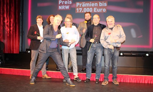Dienstag, 5. November: Zum mittlerweile neunten Mal fand die Verleihung der Kinoprogrammpreise NRW im Kölner Gloria-Theater statt, wo sich die Betreiber der 65 herausragendsten Kinos des Bundeslandes versammelt hatten, um die von der Film- und Medienstiftung NRW ausgelobten Prämien aus den Händen prominenter Paten in Empfang zu nehmen. Denn es ist ebenfalls bereits eine liebgewonnene Tradition, dass der Abend dieser Ehrungen auch dazu genutzt wird, um auf neue Kinoproduktionen aufmerksam zu machen, die mit NRW-Unterstützung, und auch teilweise hier vor Ort, gedreht wurden. Nach Trailer-Einspielungen der Filme stellten sich einige der Beteiligten den Fragen des diesjährigen Moderators Jasin Challah, der auf launige und mitunter recht improvisiert wirkende Weise durch den Abend führte. Musikalisch unterstützt wurde der griechischstämmige Schauspieler und Regisseur („Andere Eltern“) von der Folkgruppe Rembetiko, getreu nach Challahs Motto „Ein Grieche kommt selten allein…“ Petra Müller, die Geschäftsführerin der Film- und Medienstiftung NRW, hatte Challah bei einem Setbesuch von „Andere Eltern“ kennengelernt und vom Fleck weg für die Moderation des Abends engagiert.