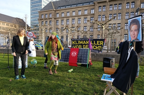 Doch ziviler Ungehorsam führt fast zwangsläufig auch zu juristischen Konsequenzen, so kam es zu Klagen gegen die Aktivist:innen. In einem Fall führte Hausfriedensbruch sogar zu einer Verurteilung zu mehreren Monaten Gefängnis. Und das, obwohl es sich dabei um fortgesetzten zivilen Ungehorsam handelte. Um Konsequenzen wie diese zu vermeiden, will die Bewegung verstärkt auf andere Protestformen setzen, die in der Öffentlichkeit mehr Anklang finden. Dazu zählen Theateraufführungen mit oft provokantem Unterton wie der Aktionstag am 12. Dezember zum 10-jährigen Jubiläum des Pariser Klimaabkommens. Mit Verkleidungen als Mutter Erde und Eisbär machten die Aktivist:innen auf politische Untätigkeit aufmerksam.