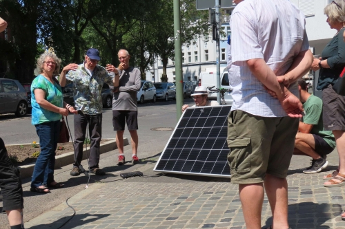 Ein zentraler Bestandteil der Arbeit sind die gemeinsam mit der Verbraucherzentrale veranstalteten Workshops für Mini-Solarkraftwerke, die mehrmals im Jahr stattfinden. Zu den Treffs kommen in der Regel 20 bis 30 Leute, die meisten davon im Rentenalter –ab und zu schauen aber auch junge Leute vorbei, es könnten aber mehr sein.