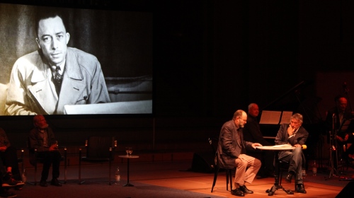 Auch am Samstagabend im (wiederum vollen) Sendesaal des WDR im Funkhaus am Wallrafplatz wurde zum Ende hin kontrovers diskutiert. Allerdings nur kurz. Zur Debatte stand die Philosophie des Literaturnobelpreisträgers Albert Camus bzw. die Frage, ob dieser eine negative Weltsicht hatte. Die von Jürgen Wiebicke moderierte „philosophische Camus-Revue zum 100. Geburtstag“, die der WDR 5 live übertrug und die von Camus’ Tochter Catharine eigens mit einem Grußwort bedacht wurde, war da schon weit fortgeschritten. Und der Kölner Philosophie-Professor Albert Speer konnte seinen Angriff auf die Thesen der übrigen Runde kaum ausführen, für einen wirklichen Disput war keine Zeit mehr: Nach der Gegenrede seines Kontrahenten, Professor Rudolf Lüthe, erteilte Moderator Wiebicke ihm das Wort nicht mehr. Erzürnt starrte Speer die verbleibenden Minuten vor sich hin. Tatsächlich hätte der Veranstaltung die zusätzliche Würze gutgetan, denn mit vier Camus-Fachleuten, zwei Schauspielern, die mehrmals Textpassagen vortrugen, einem dreimal auftretenden Poetry-Slammer und einer Band, die immer wieder musikalische Zwischenspiele lieferte, war der Abend überladen. Zwar hatte die Abwechslung durchaus etwas Bereicherndes, der Inhalt allerdings litt darunter.