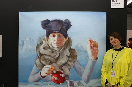 West goes East: Die russische MSK Eastside Gallery zeigt Werke von Ja’bagh Kaghado, einem amerikanischen Fotokünstler aus New Jersey, der seit Jahren in Moskau lebt und die dortige Kunstszene maßgeblich beeinflusst. 2008 zeigte er als jüngster Künstler eine Einzelausstellung im Moskauer Museum of Modern Art. Seine Portraits sind kreativ verfremdet, ohne ihre eigentliche Wirkung zu verlieren. Die Bilder der Malerin Chris Aerfeldt zeigen Frauen mit vergrößerten Handarbeiten. „Die Verzerrung ist Beispiel für den Neomanierismus“, erklärt Peter Funken. Die Australierin mit estnischen Wurzeln ergänzt: „Als Kind fühlte ich mich unsichtbar und schwach. Diese Frauen bereiten eine Welt mit weiblichen Riesen und Helden vor. Statt im Haushalt arbeiten sie draußen. Wie in der holländischen Malerei des 16. Jahrhunderts symbolisieren ihre Gegenstände etwas, etwa der von Nadeln durchstochene Apfel das Herz.“