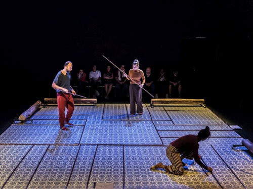 Nur kurze Zeit später befinde ich mich mit zahlreichen anderen in einer Arena im Comedia-Theater, die an einen Stier- oder Boxkampf erinnert. Ein wenig bedrohlich ist die Atmosphäre und während ich noch überlege, ob gleich tatsächlich ein Stier um die Ecke poltert und ich gar fliehen soll, entdeckt mein Auge etwas viel Schlimmeres: diverse, an den Zäunen hängende, in mehreren Sprachen verfasste Zettel mit den Überschriften „Freiheit und Gleichberechtigung“. Diese Zäune trennen das Publikum von den Schauspielern, ziehen im wahrsten Sinne des Wortes eine Grenze. Passend zu der Fragestellung „Wie gehen wir miteinander um?“ setzt sich die unter der Regie von Manuel Moser und der Choreografie von Julia Kraus Dybeck inszenierte Darbietung „Values / Värde / Werte“ mit dem Thema „Was sind unsere Werte?“ sowie „Wie leicht (be)werten wir andere (ab)?“ auseinander. Denn: Wir leben in Zeiten, in denen wir dauernd über Werte diskutieren, regelrecht von (Be-)Wertungen beschossen werden. Mehr noch: Ständig meinen wir, durch Like- und Dislike-Buttons irgendetwas bewerten zu müssen und somit teilweise über Leben und Tod zu entscheiden.