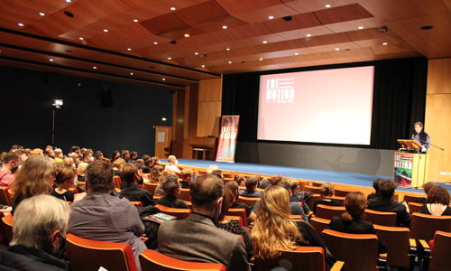 Für gemischte Reaktionen beim Publikum hatte seinerzeit insbesondere eine Sequenz in „Der Kongress der Pinguine“ gesorgt, in der historische Aufnahmen der industriellen Waltötung aus dem Jahr 1930 mit einem neuen Erzähltext im Wochenschaustil unterlegt wurden. Schlumpf wunderte sich, dass einige die Ironie der Szene trotz zahlreicher Übertreibungen nicht erkannt hätten, und Fee Liechti Seigner merkte an, dass sie diese Szene heute aufgrund ihrer Rezeptionserfahrungen nicht noch einmal so machen würde. Für die weitere Diskussion zeigte man am Abend auch Ausschnitte aus dem gemeinsamen Schlumpf-Liechti-Projekt „TransAtlantique“, ebenfalls ein Hybridfilm, der eine Liebesgeschichte an Bord eines Kreuzfahrtschiffes erzählt und diese mit dokumentarischen Aufnahmen von den Abläufen an Deck unterfüttert. Ihre Arbeitsweise für diesen Film fasste Liechti so zusammen: „Die dokumentarischen Aufnahmen standen nicht im Drehbuch. Ich musste aus dem vorhandenen Material in Kombination mit den Spielszenen dann versuchen, eine schlüssige Geschichte zu montieren. Das Konzept musste dem Material angepasst werden.“ Zum Abschluss gab die Ehrenpreisträgerin Schnitt dem Nachwuchs noch einen Tipp mit auf den Weg, der aus ihren Erfahrungen mit dem Analogschnitt herrührt, die aktuelle Editor:innen kaum mehr machen: „Um den Rhythmus eines Films zu finden ist es nötig, das Material in seiner Gänze durchzuschauen, was heute, im Digitalzeitalter kaum mehr jemand macht, zumal man dazu kaum mehr die Zeit hat.“ Nach den vier vollgepackten Edimotion-Festivaltagen findet am Montagabend, dem 17.Oktober, ab 20 Uhr, ebenfalls im Filmforum im Museum Ludwig, die diesjährige Verleihung der Schnittpreise statt.