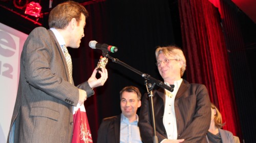 Für eine erste Auflockerung des Abends sorgte Quaas dann mit der Präsentation des Wettbewerbsbeitrags „The Centrifuge Brain Project“, einem ungemein witzigen Siebenminüter von Till Nowak, der sich in dieser Kurz-Mockumentary mit den absurden Forschungen an bizarren Jahrmarktkarussellen beschäftigt. Dafür wurde er übrigens am Ende des Festivals noch mit dem von choices gestifteten Publikumspreis ausgezeichnet. Der scheidende Leiter des Kulturamtes Köln, Dr. Konrad Schmidt-Werthern, nahm seine vermutlich letzte Eröffnung des Cine Cologne-Festivals zum Anlass, um den vier Festivalleitern jeweils eine „Winkekatze“ zu überreichen. Der traditionelle chinesische Glücksbringer solle den Veranstaltern für die kommenden Jahre gute Besucherzahlen und mehr finanzielle Planungssicherheit bescheren. Immerhin sei die Vielfalt, die die Cine Cologne Jahr für Jahr im Herbst in Köln präsentieren würde, selbst für nordrhein-westfälische Verhältnisse ungewöhnlich, so Schmidt-Werthern.
