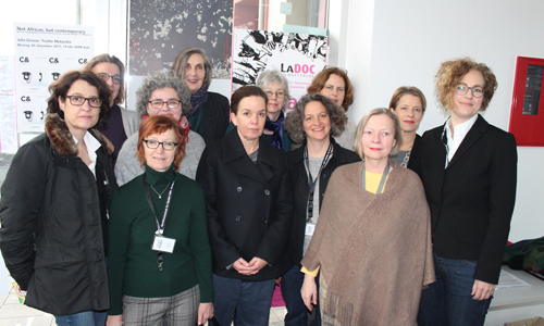 Freitag, 1. Dezember: In diesem Jahr hatte das Frauen-Filmnetzwerk LaDOC bereits zum zweiten Mal zu einer Lectures Konferenz geladen, bei der unter dem Titel „Kraftfelder“ in Köln mit Vorträgen, Diskussionen und Filmprogrammen der Fokus auf den weiblichen Blick in der Filmarbeit gerichtet wurde. Nach der Eröffnung am Donnerstagabend im Filmclub 813 mit der Vorführung von Valeska Grisebachs neuem Film „Western“ und einem Gespräch mit der Regisseurin über ihre Arbeit, wurde am Freitagmittag in der Aula der KHM das Programm mit der Lecture „Andere Projekte mit Anderen.“ fortgesetzt, in der die Filmwissenschaftlerin und Kuratorin Madeleine Bernstorff über verschiedene Kollaborationen und Zusammenarbeiten in ihrem Schaffen berichtete. „Kraftfelder“ ist eine gemeinsame Veranstaltung von LaDOC, der Kunsthochschule für Medien in Köln (KHM) und der Gleichstellung der KHM. In ihrem Grußwort betonte die Gleichstellungsbeauftragte der KHM, Dr. Juliane Kuhn, dass für sie „die Unterstützung von Netzwerken sehr wichtig“ sei und dass man sich an der KHM auch über das Studium hinaus darum bemühe, die AbsolventInnen zu fördern und bei ihrem Eintritt in den freien Markt zu unterstützen.