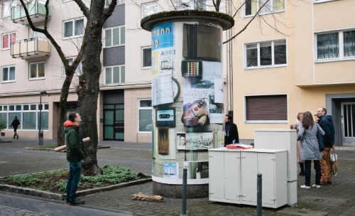 2015, ausgerechnet zum 160. Jubiläum der Litfaßsäule verkündete der Kölner Stadtrat, dass sie die Anzahl der Litfaßsäulen im Kölner Raum von über 800 auf 500 reduzieren wollen. Im digitalen Zeitalter klingt das nach dem Anfang vom Ende für die analogen Werbezylinder. Als fester Bestandteil des Stadtbildes und eines der Hauptwerbemittel für Kulturveranstaltungen käme eine solche Dezimierung einem schweren Einschnitt in die Kölner Kulturlandschaft gleich. Deswegen wurden mit einer Plakataktionen von Absolventen der KHM aus einigen der ungenutzten Litfaßsäulen sogenannte Kunstsäulen, die statt Werbung Kunstprojekte im öffentlichen Raum ausstellten – aus den Trägern von Werbung für Kunst sind also Träger von Kunst selbst geworden.