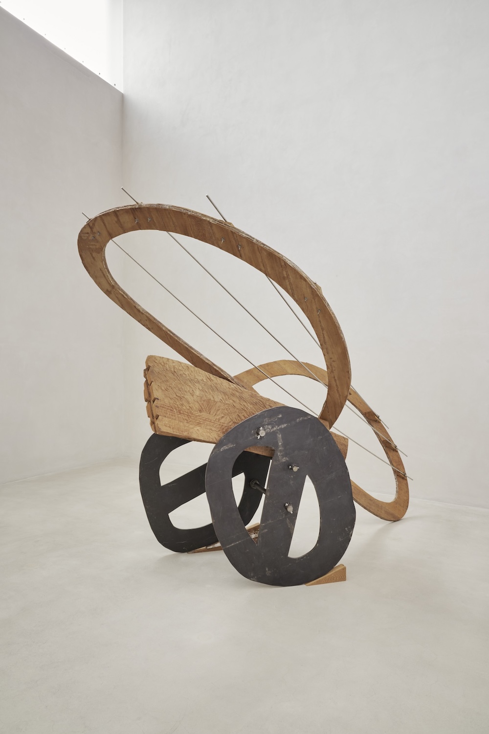 Kolumba, Raum 19: Victoria Bell, Fliegende Lokomotive, 2005, rotes Zedernholz, verleimt, Schichtholz, Stahl und Edelstahl, © Künstlerin; Kolumba, Köln; Foto: Mareike TochaGeblieben sind darüber hinaus die Binnenausstellungen. Hervorzuheben sind Susanne Kümpel mit ihren Malereien auf Papier sowie Victoria Bell, die nun auch als Malerin vorgestellt wird und mit ihrer monumentalen „Fliegenden Lokomotive“ (2005) die Ausstellung beschließt, als herausragendes Beispiel für die „Freiheit des Denkens, das gemeinschaftliche Aushandeln, das Spiel und die Kraft der Utopie“, wie das Kuratorenteam im Taschenbuch für die Ausstellung ausgibt. Fast ist man enttäuscht, dass der Titel „make the secrets productive!“ ein Satz von Joseph Beuys ist, geschrieben 1977 auf eine verwitterte Holztür. Aber das ist eben auch Anliegen, wie das Museum schreibt: „Unsere Jahresausstellung versteht sich als Statement für die systemrelevante Dimension der Kunst in einer funktionierenden Demokratie“. Gesellschaftskritische Beobachtungen werden in schwierigen Zeiten formuliert, das Sehen und Hören geschärft, und die Geheimnisse bleiben und öffnen erst die Spielräume. Sie inspirieren, gegen den Strich zu denken.