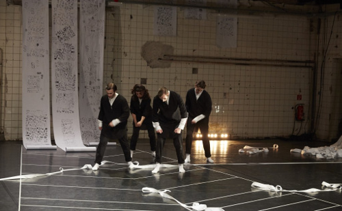 Zwei Performer, eine Schauspielerin, ein Tänzer und ein Musiker haben eine multidimensionale Version entwickelt, in der Szenen sich in- und übereinander entwickeln. „Jeder kann sich in dieser Situation wiederfinden, jeder kennt diffuse Schuldgefühle“, erläutern die Schwestern. „Wir haben Romanstellen ausgewählt, die uns wichtig waren. Die Choreografie wurde durch Improvisation erarbeitet. Das Team hat engagiert mitgewirkt, jeder hat seine eigene Geschichte eingebracht.“