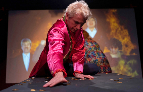 Nicht ohne Grund heißt die Fassung, die am vergangenen Freitag Premiere feierte „La Traviata – oder: Doro, ich krieg keine Luft mehr (Letzte Worte Carusos an seine Ehefrau)“, denn Michaelsen und Kreyer übertragen Verdis Opernhandlung auf den bis heute auch noch vorhandenen Divenkult und lassen die Grenzen zwischen dem Geschehen auf und hinter der Bühne verschwimmen. Verdeutlicht wird dies zusätzlich durch Video-Einspielungen (Valerij Lisac), die in Ausschnitten Interviews mit großen Operndiven wie Jessye Norman, Christa Ludwig oder auch Brigitte Fassbaender einblenden.