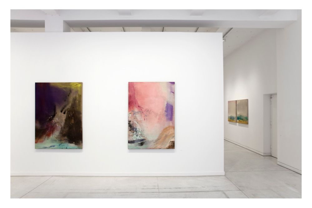 In der Ausstellung setzt das 2018 mit kleinformatigen Zeichnungen ein, die in Bad Reichenhall entstanden sind. Die Berge, die früher wie atmende, sich auftürmende Gehäuse wirkten, lösen jetzt ihre Kontur auf, einzelne Farbbewegungen breiten sich wirbelnd aus. In einigen der neuen Gemälde finden sich Hinweise auf Vulkane, als Zitate auf den Fuji im japanischen Holzschnitt. Die Elemente der Natur, ihre ständige Bewegung und ihre Vergänglichkeit gewinnen an Bedeutung, etwa in den „Wasserfällen“. Andere Gemälde werden von Schwarzanteilen überzogen, die in tonalen Abstufungen frühere Malereien verdecken und um so mehr eine Raumtiefe erzeugen. Über aller Unruhe liegt, im Zusammenspiel von Licht und Schatten, die Luft als substanzielle Schicht, die sich zum Spirituellen öffnet. Von einem „ätherischen Hauch“ hat Leiko Ikemura 2001 in einem Interview im Museum Lausanne gesprochen und damit die Verschleierungen und ein Vibrieren der Oberfläche beschrieben. Die aktuelle Ausstellung nun ist (wie eines der Bilder) mit „a.Ï.r.e“ betitelt: als Hinweis auf das „Eintauchen“ in die transparente Stofflichkeit und indirekt als aktueller Bezug zum lebensnotwendigen Atmen und dann noch, in der Verwendung des Spanischen, als Anbindung an die eigene Biographie.