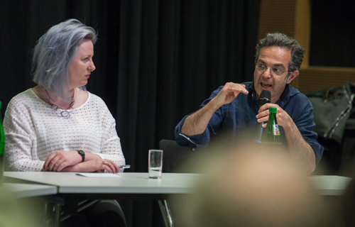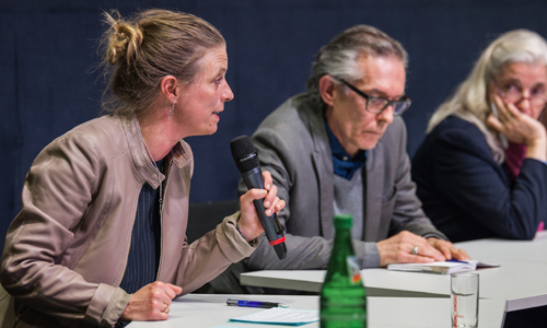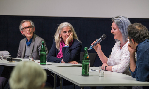 Nun ist Kulturpessimismus aber an sich noch nichts Schlechtes, solange er fundierte Argumente und Diagnosen liefert. Dies wurde dann auch von der prominent besetzten Diskussionsrunde in Angriff genommen. Zugegen waren: die Schriftsteller Navid Kermani und Ulrich Peltzer, die seit letztem Semester auch Dozenten des neuen literarischen Studiengangs an der KHM sind, Kultusministerin Isabel Pfeiffer-Poensgen, FAZ-Kulturjournalistin Sandra Kegel und einige andere Dozenten der KHM.