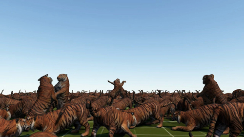 Neben den historischen Exponaten sind auch einige (mediale) Kunstwerke zu sehen, wie die Videoinstallationen von Thomas Hawranke. Der Medienkünstler modifiziert Spielwelten bekannter Games wie die des Shooters „Half-Life 4“ auf einfache, aber wirkungsvolle Weise: Eine große Ansammlung von virtuellen Tigern an einem Ort zeigt das einprogrammierte Verhalten der Tiere viel deutlicher und entlarvt es als ständige Abfolge derselben Bewegungen, die sonst für den großen Realismus dieser virtuellen Welt erst sorgen.