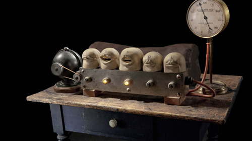 choices: „IOA“ zeigt fünf Köpfe in einer pneumatischen Sprechmaschine. Die Köpfe reden über den Zwang ihrer Arbeit. Wie kamen Sie auf die Grundidee?
