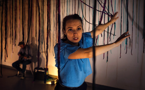 Was hat ein großer blauer Luftballon mit einem Theaterstück über Auswandern, über Verreisen, über Flucht zu tun? Den blies eine junge Frau kräftig auf vor den Augen der Zuschauer, die im Vorraum des Theaters warten mussten. Und stellte sich vor: Helena Aljona Kühn, geboren in Kasachstan, wo sie kaum gelebt hat, von wo sie aber in die Welt auszog und in Köln als freie Schauspielerin gelandet ist. Der Ballon wird zum Globus, sie malt darauf eine einfache Landkarte, versucht die Entfernungen auf der Welt und auch im All zu erklären. „Vater Rabe, Mutter Erde, Schwester Stern und Bruder Schnee“ ist ihr Theater über Gehen und Bewegen, über das Verlassen der Heimat und dem Aufbruch ins Unbekannte.
