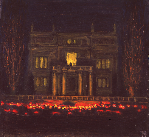 Und dann diese Rahmungen, doppelt und dreifach mit hohlem Stuck unter mattem Echtgold, kein Wunder, dass der übrig gebliebene, von der Revolution einhundert Jahre zuvor vergessene Adel sowas gern Seinesgleichen zeigte. Heute sind die Dandys der Jahrhundertwende ungerechtfertigterweise längst vergessen. Ihre Hochzeit war die Belle Epoche und noch ein paar Jahre danach, über ihr Wirken schweigt die Kunstgeschichte boshaft, hat selbst neue zeitgenössische Malerfürsten (als schnelle Beispiele: etwa wie Richter oder Lüpertz) kreiert, deren Selbstdarstellung und Einfluss bei den Eliten heute ähnlich funktioniert und deren Wert vom Markt ebenso überkandidelt aufgebauscht ist. Sieben Themen gliedern das mächtige Füllhorn in Bonn, geschicktes Licht lässt pralle Körper leuchten, am Ende fällt wie bei jedem der letzte Vorhang. Die Malerfürsten werden wie Popstars begraben, doch wir wissen, es hat nichts genutzt.
