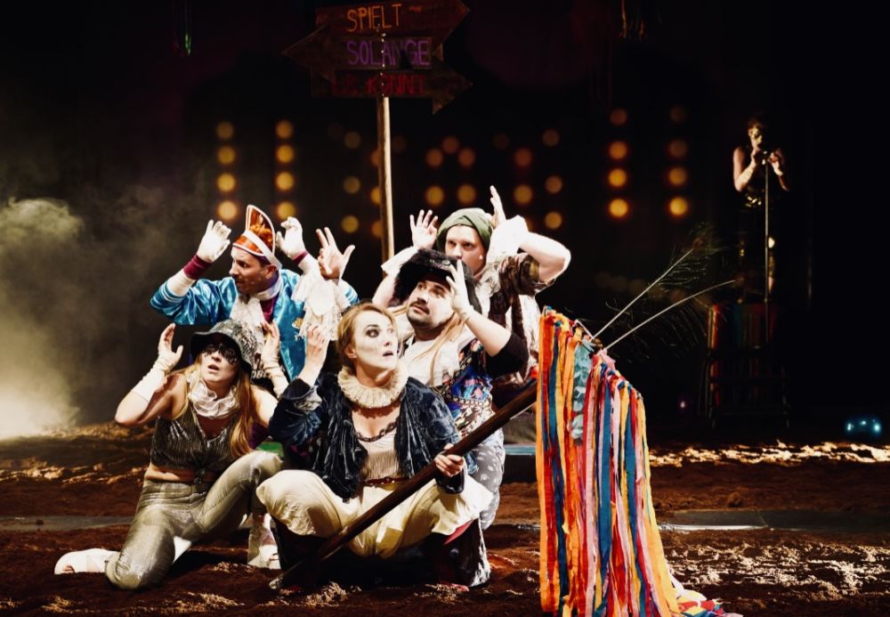 Das Nö-Theater macht daraus eine in historisierenden Kostümen gespielte komische Reflexion über das Theatermachen selbst: Da klagt die Truppe, den Text nicht behalten zu können. Ein vermeintlicher Kritiker schaltet sich ein und übernimmt die Rolle Ludwig XIV. Es wird über Metatheater, Crossgender, Lars Eidinger und Molières Probleme schwadroniert. Letztlich aber dreht sich alles um eine letzte Probe vor dem Auftritt in Gegenwart des Königs. Asim Odobašić, Lucia Schulz, Asta Nechajute, Anne Müller, Yannick Hehlgans und Felix Höfner gelingt durchaus ein unbändig komisches 90-minütiges Making of. Nichtsdestotrotz bleiben Sachverhalte wie Premierendruck, Finanzschwierigkeiten, Schauspieler:innenlaunen oder unfertige Textvorlagen als Parallelen zwischen Molière und der freien Szene doch zu unspezifisch. Und auch die dann noch angehängten Bruchstücke aus den „Lästigen“ wirken merkwürdig disparat. Selbstverständlich hat auch heute das sinnlose Geschwätz Konjunktur, doch die Themen und Formen sind völlig andere als zu Molières Zeiten. Insofern wirkt das Stück nur noch als lästiger Appendix und lässt den Abend aus der Balance kippen.