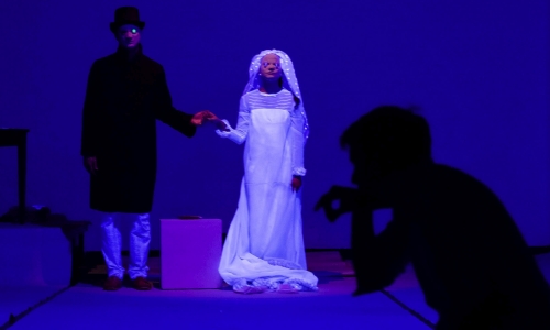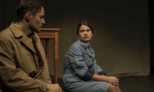 Neben dem gelungenen, finsteren Psychogramm des talentierten Ripley – in dem einige eine Symbolfigur des französischen Existentialismus erkennen wollen – arrangiert Hupfer auch das müßige, von der süditalienischen Sonne geküsste Leben des Liebespaares Marge Sherwood und Dickie Greenleaf. So werden Bühnenvorhänge mal zu einer Hängematte, mal zum Bug eines Schnellbootes geknotet; mal wird der doch eher wenig mediterrane Keller des Freien Werkstatt Theaters zum lichtgefluteten Atelier des bescheidenen Künstlers Dickie, mal zu einem schillernden Etablissement in Neapel. Analog hierzu lässt das Kostüm Marge, gespielt von Mona Mucke, wahlweise in einem beigen Trenchcoat kokettieren, in einem paillettenbesetzten, scharlachroten Abendkleid singen oder in Anzughosen die argwöhnische Furie spielen. Marge, der schriftstellernden, in der Bühnenfassung von Bastian Kraft unlängst Verlobten Dickies („Das Problem mit Dickie ist: Zuerst ist es so, als würde die Sonne auf einen scheinen und alles ist herrlich. Und dann, dann vergisst er einen und es wird sehr, sehr kalt“), wird zudem eine separate, dramaturgische Funktion zuteil. Ihr Vermögen, das Doppelspiel des unliebsamen Gastes Ripley („Ich kann Kinder hüten, Unterschriften fälschen und fast jeden imitieren“) frühzeitig zu erkennen, setzt sie in ein ambivalentes, für flüchtige, sehr gut gespielte Momente beinah vertrautes Verhältnis zu dem Mörder ihres Gatten. Diese Nuance greift Hupfer gekonnt auf, indem Autorin Marge, die bisweilen eifrig an ihrer Schreibmaschine tippend im Bühnenhintergrund verschwindet, vereinzelt aus der stringenten Handlung heraustritt, um Passagen und Regieanweisungen zu verlesen. Ihr eigenes, im Fortlauf des Stücks entstehendes Manuskript wird scheinbar mit der Handlung synchronisiert.