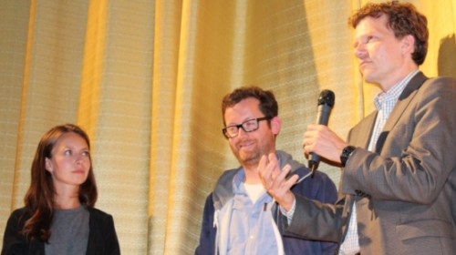 Regisseur Florian Opitz, der nach „Der große Ausverkauf“ nun seinen zweiten abendfüllenden Kino-Dokumentarfilm abgedreht hatte, erläuterte beim anschließenden Publikumsgespräch, dass das Konzept von „Speed“ größtenteils erst im Schneideraum entstanden und er deswegen seinem großen Mitarbeiterteam besonders dankbar sei. Opitz lobte insbesondere die Arbeit seiner Editorin Annette Muff, die während der eigentlichen Dreharbeiten nicht dabei gewesen war und sich deshalb eine neutrale Beobachterposition beim Auswählen der Szenen bewahren konnte. Material war, wie bei den meisten Dokumentationen, nämlich im Überfluss vorhanden: Aus den meisten Szenen hätte man locker einen jeweils 45minütigen Film machen können, bemerkte der Regisseur. Was ihm persönlich die Begegnungen mit seinen Interviewpartnern bedeuteten, fasste Opitz euphorisch zusammen: „Ich habe von jedem Protagonisten ein kleines Stückchen mitgenommen, was mir beim Nachdenken über das Hamsterrad und bei meiner täglichen Entschleunigung weiterhilft.“