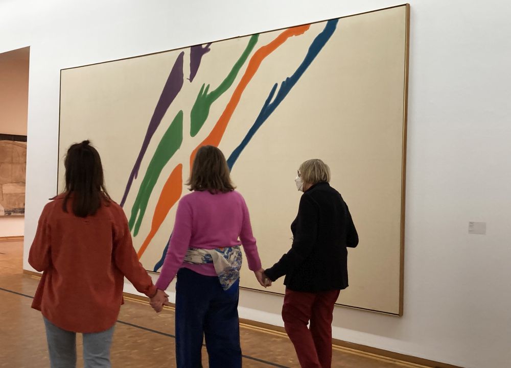Manchmal reicht eine kleine Geste, um unsere Gegenwart auf den Punkt zu bringen. Das Performance-Duo katze und krieg macht schon mit dem Titel ihrer neuen Arbeit einen Ausfallschritt: „näher“ heißt das neue Opus und man spürt schon den Sprengsatz in Zeiten der Distanzierung und des Abstandhaltens. Die Performerinnen katharinajej und Julia Dick laden das Publikum zu einer performativen Ausstellung. Wer kommt, spielt mit. Ausgestattet mit Funkgerät und Kopfhörern geht es durch das Museum Ludwig. In ausgewählten Sälen mit Werken der Pop-Art oder des Surrealismus verteilt das Duo kleine Aufgaben an die Mitspielenden. Hier begegnen sich fremde Menschen zu einer gemeinsamen Aufgabe. Dabei machen sie sich selbst zum Kunstwerk: katze und krieg haben kleine Tafeln mit dem Namen des neuen Kunstwerks, seiner Entstehungszeit und der Schöpferinnen vorbereitet, die das mitspielende Publikum dann hochhält – um von den nicht mitspielenden Museumsbesuchern bestaunt zu werden.