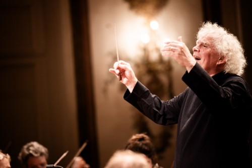 Nach einem bewegten Stück von Bela Bartók spielt das Chamber Orchestra of Europe unter der Leitung von Rattle eine Vorstudie zu Ferruccio Benvenuto Busonis Oper „Doktor Faust“, die „Sarabande“. Am 25. April zu hören.