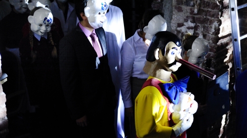An eine Wand werden Mosaike aus bunten Post-its geklebt. Eine Aerobic-Gruppe turnt, Lebensmittelkontrolleure sezieren Nahrungsmittel. Esoteriker meditieren, Hedonisten genießen. Dazwischen eine Pinocchio-Maske mit langer Lügennase. Man fühlt sich wie in einem zeitlich extrem überdehnten, begehbaren Videoclip. Kamerun bietet kulturkritische Diagnosen der Gegenwart, die einen weiten Bogen spannen von den Veränderungen an den Universitäten bis zu den globalen Protestbewegungen.
