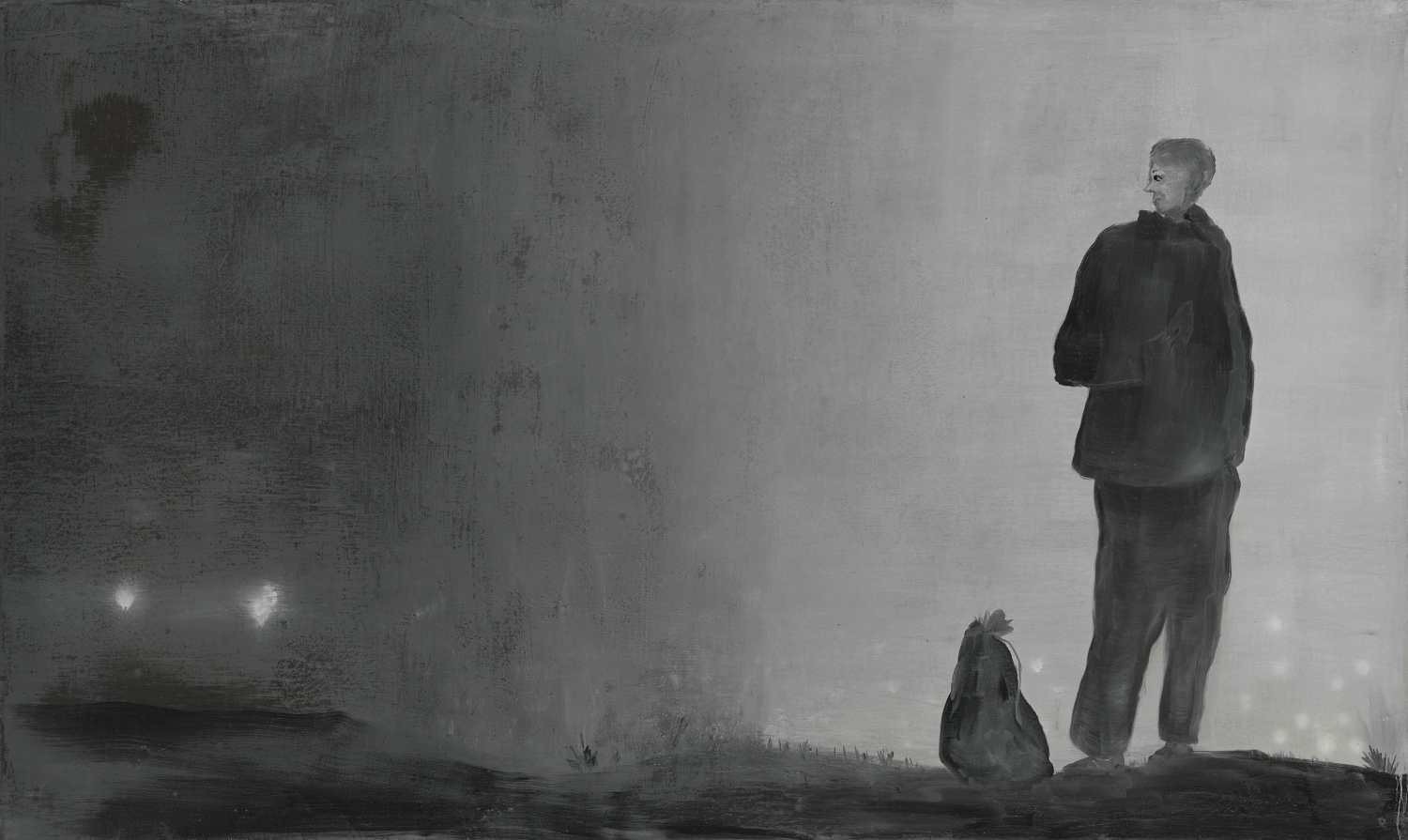 Ja,Norbert Schwontkowski hat ungesund gelebt, ja derderMaler starb, als gerade die Aufmerksamkeit im Kunstmarkt wuchs, und? Geblieben sind seine Skizzenbücher in Vitrinen, seine Gemälde an den Wänden und seine künstlerische Außergewöhnlichkeit ohne Farbrausch. „Der frühe Morgen im Nebel“ (Öl auf Leinwand, 2009), der vom dünnen Licht zweier Scheinwerfer durchbrochen wird, hängt immer noch in meinem Kopf. Sein „Letzter Brief vom letzten Menschen“ (Öl auf Leinwand, 2009) bleibt unleserlich auf blauem Grund. Seine Bilder, so der Maler, „stellen nichts vor, sie erzählen nichts“. Unverrückbar und still entziehen sie sich dem Dialog, der Konversation, dem Gequatsche.
