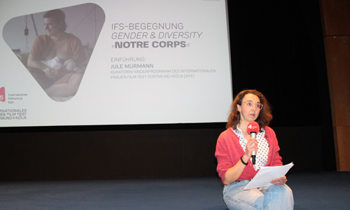 „Claire Simons Dokumentarfilme sind keine reinen direct cinema-Filme, die die reine, unbeeinflusste Beobachtung für sich beanspruchen“, führte Jule Murmann im Filmforum weiter aus. Denn die Regisseurin würde sich selbst auch immer mit in die Beobachtungen einbringen. Auch bei „Notre Corps“ ist das nicht anders, denn während der Dreharbeiten im Pariser Krankenhaus wurde auch Simon selbst zur Patientin dort, da bei ihr aufgrund mehrerer bösartiger Tumore eine Mastektomie vorgenommen werden musste. So wird die Regisseurin – hier jedoch ungewollt – mitten in den Dreharbeiten selbst zu einem der geschilderten Fälle vor der Kamera. Dass „Notre Corps“ auf der Berlinale zwar das „Forum“-Programm eröffnete, jedoch nicht im großen internationalen Wettbewerb gezeigt wurde, ist für Murmann symptomatisch zu verstehen. Für sie und ihre KollegInnen des Internationalen Frauen Film Fests liegt das an der „noch immer weit verbreiteten Tabuisierung des weiblichen Körpers“, weswegen es ihnen ein großes Anliegen war, „Notre Corps“ bei der ifs-Begegnung vorzustellen. Damit war der Abend im Filmforum bereits ein kleiner Vorgeschmack auf das eigentliche Festival, das vom 16. bis 21. April 2024 in diesem Jahr ebenfalls in Köln stattfindet, und bei dem über einhundert Filme von Regisseurinnen aus aller Welt gezeigt werden. Die Beiträge des von Murmann kuratierten Kinderprogramms des IFFF, das Altersgruppen zwischen der Kita bis zur Oberstufe abdeckt, werden in diesem Zeitraum vormittags ebenfalls im Filmforum aufgeführt werden.