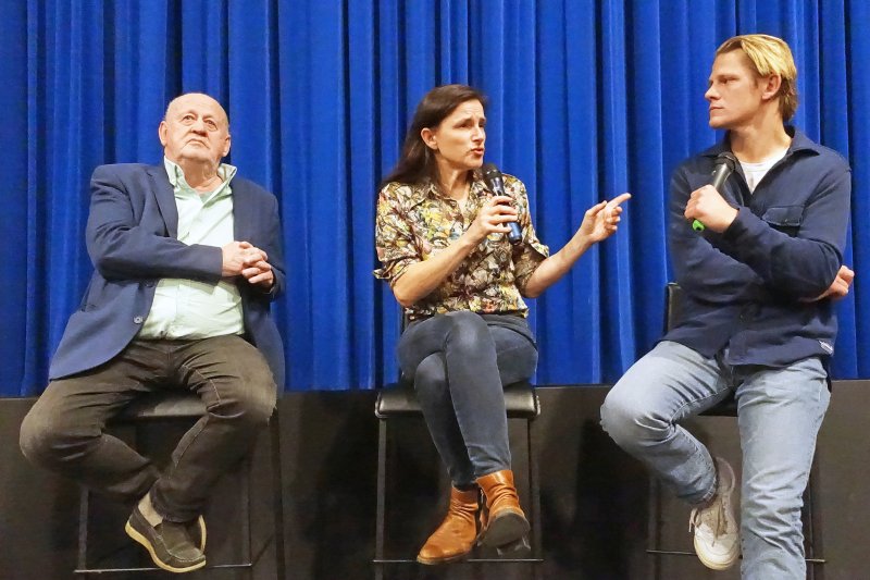 Albert verwies dabei auf unsere Gegenwart, die gezeichnet ist von Krieg und Klimakrise, in der auch die Filme auf der Leinwand wenig Hoffnung versprühen. „Warum möchte ich einen Film sehen, warum möchte ich einen Film machen? Also eigentlich nicht, um zu sagen, es gibt nur Entzweiung und Hoffnungslosigkeit, sondern wie hier im Film: Obwohl eine Schuld besteht, gibt es vielleicht die Möglichkeit eines Blicks, einer Berührung sogar.“ Oder die Chance, seinem Gegenüber die eigene Geschichte zu erzählen – entsprechend des Titelmotivs, der Legende der Mittagsfrau. Albert: „Diese Mittagsfrau steht dafür, dass du darüber reden musst, wo du herkommst, weil du sonst psychisch krank werden kannst, weil du die Trauer der Familie nicht verarbeitest.“ Albert hat sich selbst ausgiebig mit der Tätervergangenheit ihrer eigenen Familie auseinandergesetzt. „Es ist wichtig, dass ich meine Geschichte erzähle, auch meinem Sohn weiter erzähle, auch wo er her kommt. Wenn du nicht sprichst, bleiben Trauer und Gewalt länger. Alles Unverarbeitete, auch in der Gesellschaft, ist nicht gut.“