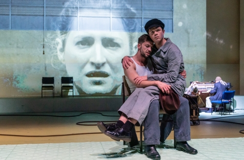„Menschen sind Verbrecher, das musst du wissen“, sagt die Mutter zu ihrem Sohn. Als Lebenslosung kommt man damit ziemlich weit, kann immerhin Unternehmer werden. Karl ist mit seiner Mutter und den Geschwistern Erich und Marie verarmt nach Berlin gezogen. Man trägt Overall, Feinripp und Pelzmütze (Kostüme: Maria Roers) und wirft sich kopfüber in eine Proletenpassion. Karl (Simon Kirschs) sieht aus wie ein proletarischer Eros Ramazotti, der an Luchino Viscontis Film „Rocco und seine Brüder“ denken lässt. Er bändelt kurz mit dem Revolutionär Paul (Nikolaus Benda) an, einem anarchischem Haudrauf. Die beiden turteln klassenkämpferisch herum als homoerotisches Dreamteam des Kommunismus. Keine Ideologie ohne erotische Posterboys und -girls. Dank des proletarischen Pragmatismus der Mutter (Lola Klamroth) dauert der Flirt mit dem Umsturz allerdings nicht lange.