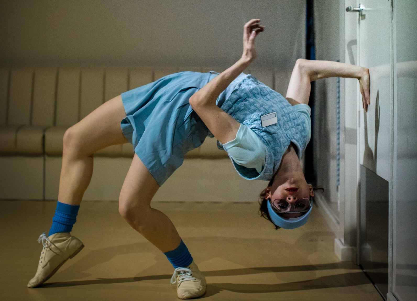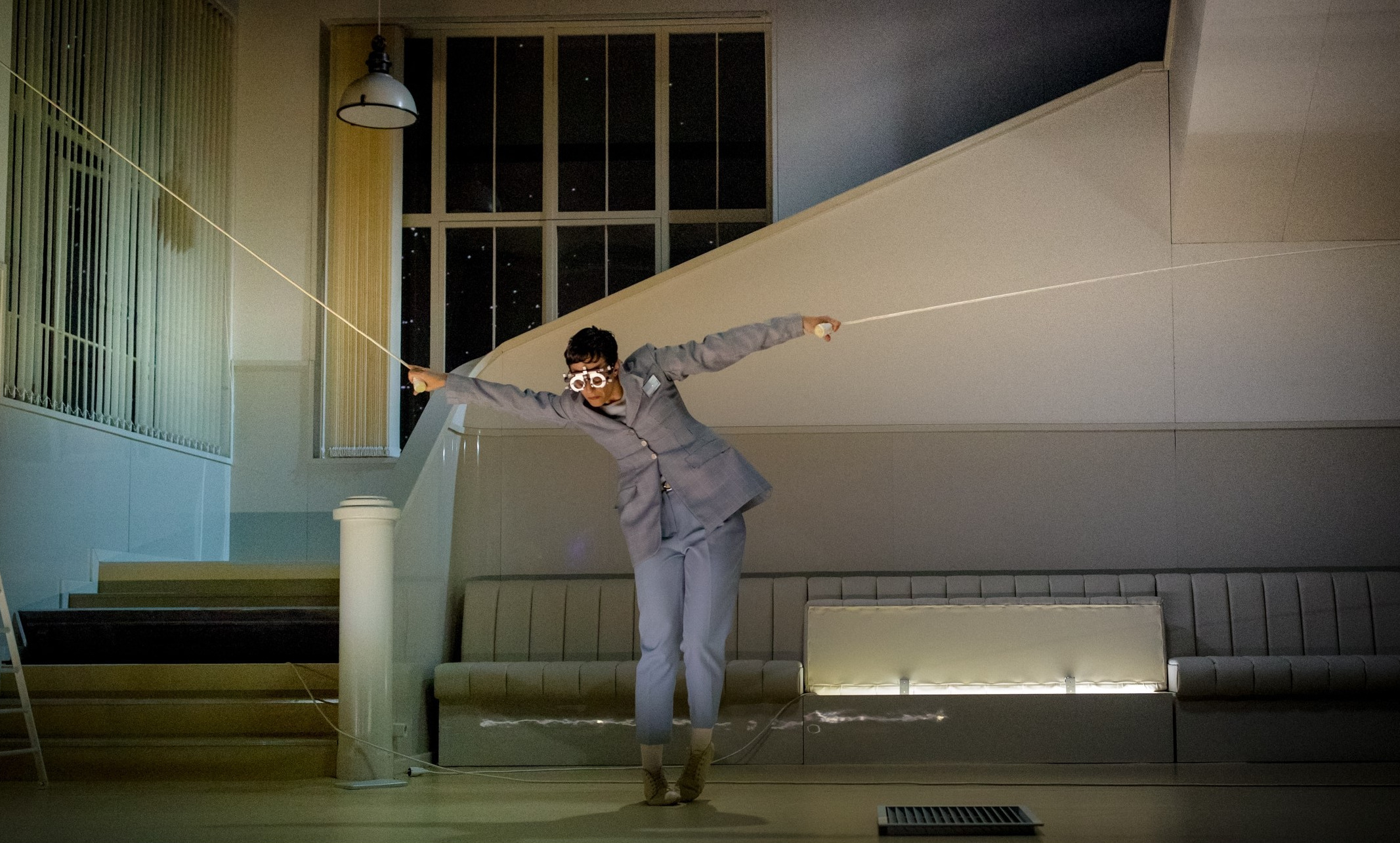 Aus den 70 Minuten der Uraufführung (Juli 2018 in Barcelona) scheinen inzwischen bald 90 geworden zu sein, weil sich diese absurde Dystopie so gut trägt. Die Kulisse wurde inzwischen verbreitert, doch für die Möglichkeiten im Depot 1 war der spanische, von einem LED-Licht eingerahmte Bühnenkasten etwas klein, die rechtwinkligen Seitenwände schränkten den Einblick von unteren seitlichen Plätzen stark ein.