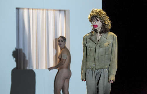 Tracy Letts‘ elf Szenen reihen ohne biografische Chronologie Alltagssituationen aneinander. Was einem eben so zustößt in sechzig Lebensjahren: Auseinandersetzungen mit den Kindern, am College mit Freundinnen, eine Therapiesitzung, ein Gespräch in einer Reinigung, der Seitensprung mit dem Chef, ein lautstarker Ehestreit nach einer Verurteilung wegen Trunkenheit, die letzten Tage im Pflegeheim. Doch die beiläufig wirkenden Dialoge gerinnen in der Inszenierung von Lilja Rupprecht zu Momenten einer sich verstärkenden Entfremdung. Nach einem One-Night-Stand mit ihrem Vorgesetzten steht Lou Zöllikau mit strengem Hosenanzug und rot verschmiertem Mund reserviert in einem Lichtquadrat, während der verletztlich-nackte Guido Lambrecht um sie herumtänzelnd sein Begehren heraussäuselt. Die Verdammung zum Schicksal der Geliebten schwebt drohend wie ein Damoklesschwert über ihr. Als ihr zuvor eine Gefängnisstrafe wegen Trunkenheit am Steuer droht, fährt Sabine Orleans‘ Mary Page Marlowe den Streit mit ihrem seine Liebe erklärenden Ehemann (Stefko Hanushevsky) am Esstisch zur verbalen Schlacht hoch. Sie brüllt, tobt und besteht mit einer selbstzerstörerischen Wut auf Schuld und Buße. Es geht um mehr als weibliche Distanzierungsversuche, um Selbst(ver)achtung, um Widerstand. Es liegt auch ein Schimmer einer tiefen existenziellen Verlassenheit über Tracy Letts‘ Hauptfigur, die sich jedem Anschein einer sozialen Verkleisterung verweigert. Gerade auch angesichts eines Lebens, das in einzelne unverbundene Fragmente zerfällt, die dann identitär oder sozial zu einem Ich zusammengeflickt werden sollen.