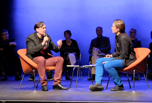 Darin trifft die französische Forscherin Marie Curie in Paris auf den Maler Edvard Munch, der sie zwischen ihren Apparaten malt. Ein Spiel mit der Realität, denn ein solches Bild ist wohl nie entstanden. Inspiriert sei das Gedicht durch einen Traum, so der Autor im anschließenden Gespräch. Darin geht es auch um die für den Norden so typische Melancholie.
