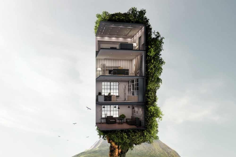 Heute gießt sich der zivilisierte Mensch seine Prunk- und Rückzugsräume in Beton, er lebt gern allein in einer Wohnung oder zu zweit in einem ganzen Haus und verantwortet mit seiner Baukultur ein Drittel der CO2-Emissionen. Nur: Wenn die Menschheit nicht bloß prima leben, sondern auch überleben will, dann muss sie umdenken. In ihrer Ernährung, in ihrer Fortbewegung und: in ihrer Wohnkultur. Umzudenken aber, das fällt den Menschen schwer – siehe Ernährung, siehe Fortbewegung. Weil, wer umdenken will, auch handeln muss. Verdammt! Doch Handeln ist gefragt: Wohnraum gehört neu gedacht, und zwar hurtig! Das Klima fliegt uns um die Ohren, klassische Bausubstanzen gehen zur Neige.