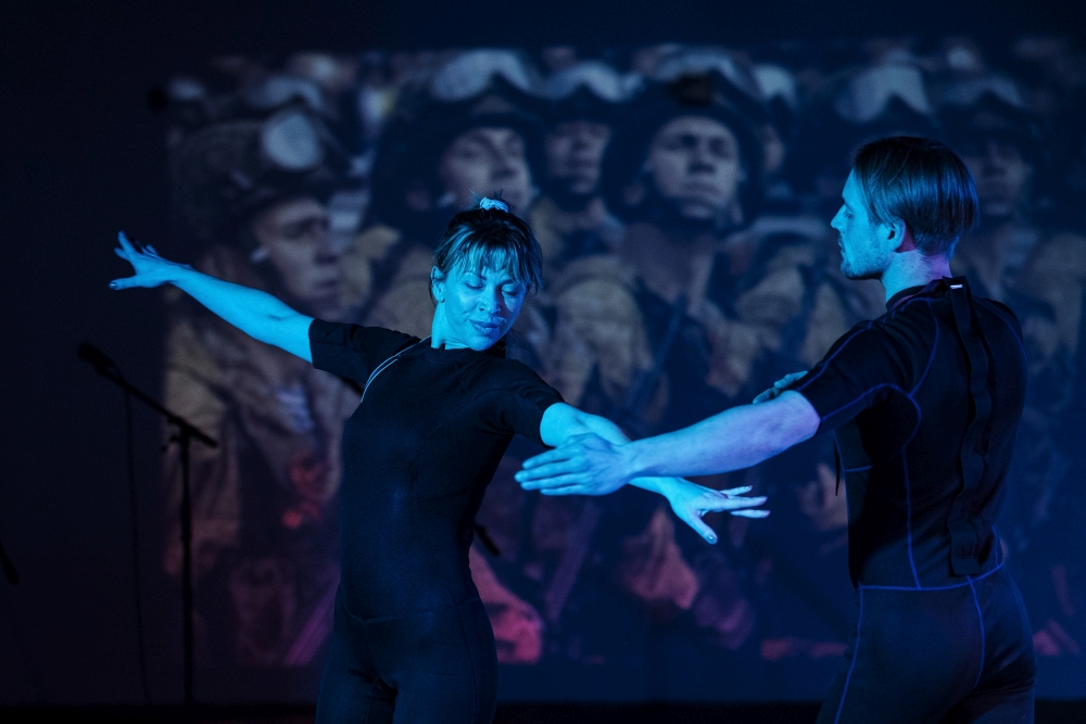 Die ukrainisch-deutsche Inszenierung beleuchtet im gedämmten Keller-Licht das Abtasten des Individuums in einer auf Stolz und Staatstreue geeichten Gesellschaft und lässt die Anmut des Nationalballetts mit dem Gleichschritt Roter Armee-Paraden verschmelzen. Im Zuge der Premiere zeigt sich eine irritierend ruhige Darstellung des Stoffes. Intime Monologe und scheinbar nebenbei geführte Unterhaltungen offenbaren die Biographien der Protagonist:innen (Tetiana Zigura, Timon Ballenberger, Andriy May). Zwischen Zärtlichkeit und Apathie bewegen sich die Figuren mit Geschichten über Ausgrenzung, politische Verfolgung und Sehnsucht nach künstlerischer Entfaltung. Dabei erinnert das Ensemble an den Wert des Zuhörens, der Anteilnahme. Final stellt sich die Frage, wie der Begriff „Menschlichkeit“ vor allem durch die zerstörerischen Attitüden der Spezies geprägt wurde.