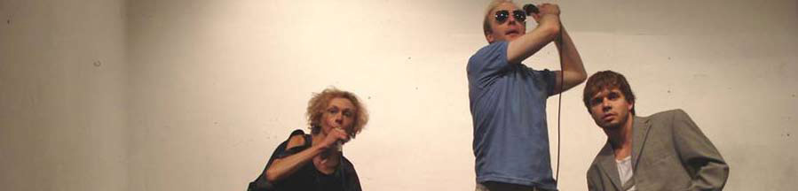 Es gibt für mich zwei Ebenen im Stück: die kleinen Problemchen des Paares, das sich zofft, wie oft es sich gesehen hat: 3 Wochen in 14 Jahren. „Szenen einer Ehe“ als Farce also. Und gleichzeitig gelingt es dem Stück, anhand dieser Probleme von der ganzen Welt und den Globalisierungszusammenhängen zu erzählen. Das Paar wird bei uns von zwei älteren Schauspielern gespielt, der junge Schauspieler spricht die Texte über Gewalt und Globalisierung. Alle drei Figuren stehen miteinander in Beziehung und erzählen so auch etwas über die Machtverhältnisse zwischen Menschen, auch zwischen Schauspielern. Damit sind wir bei der Grundsituation des Abends. Wir gehen von einer Performancegruppe aus, die sich in einem Klangraum mit drei Mikros befindet und den Text performt.