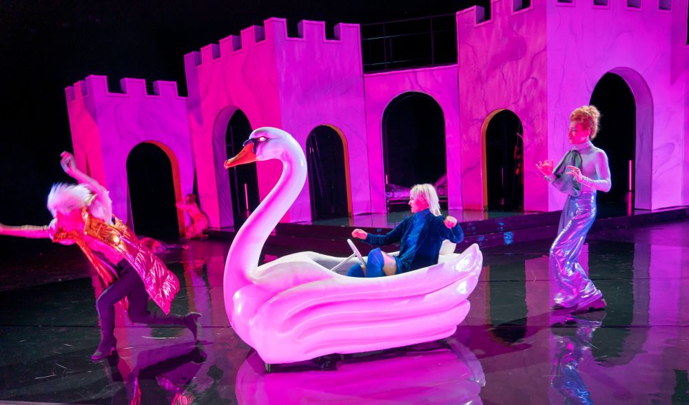 Die Regie hat sich Shakespeares Königsdrama von der Autorin Katja Brunner übermalen lassen: Plot und Figuren bleiben weitgehend erhalten, die Dialoge werden radikal erweitert mit feministischen und soziologischen Exkursen. Es wird gekalauert, das Publikum angepflaumt, Pollesch und Jelinek stehen Schmiere. Yvon Jansen als Richard gibt eine souveräne Manipulatorin, die im Turbosprech alle Register zieht, jeden Widerspruch bereits eingepreist hat und ein Blutbad auf den Weg zum Thron anrichtet. Regisseurin Karabulut und ihr Ausstattungsteam haben dafür einen Rahmen gezimmert, der mit den grellbunten Kostümen, der bemalten Burgzinnen-Deko, dem James-Bond-Filmvorspann auf die Pop- und Theaterkultur der 1960er verweist. Weitergeschrieben wird damit auch Susans Sontags legendäres „Camp“-Plädoyer, das das subversive Potential der schwulen Ästhetik feierte – und hier für eine genderfluide Deutung von Shakespeares Mörderstory in Anschlag gebracht wird. Vor allem vor der Pause gelingen eindrückliche Szenen wie beim Mord an Hastings oder Lady Anns Zahlenspiele mit Toten und Atemzügen. Nach der Pause zerfleddert die Inszenierung zusehends und verliert sich eher in einem effektsatten Spielreigen.
